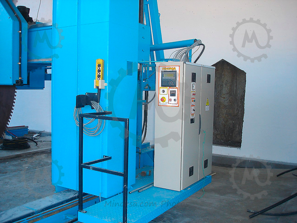 Special electric cables with mesh sheathed, moved through the cable supporting rails. Measure Encoder component with braided wire mesh cables (counting system) to protect against power surges. The base installation also has inner lined water cables consisting of a mesh reinforced rubber hose inside. Shields and rails for collecting the oil coming from lubrication of material used for cutting. Water pressure switch to control cooling and washing of the saw. (Placed on top of pillar for greater accuracy).