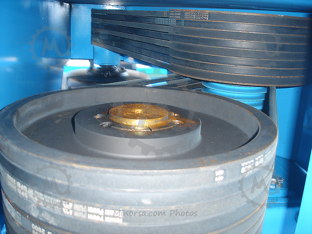 ✓ Use of pulleys and V-belts for the saw support spindle on double stage