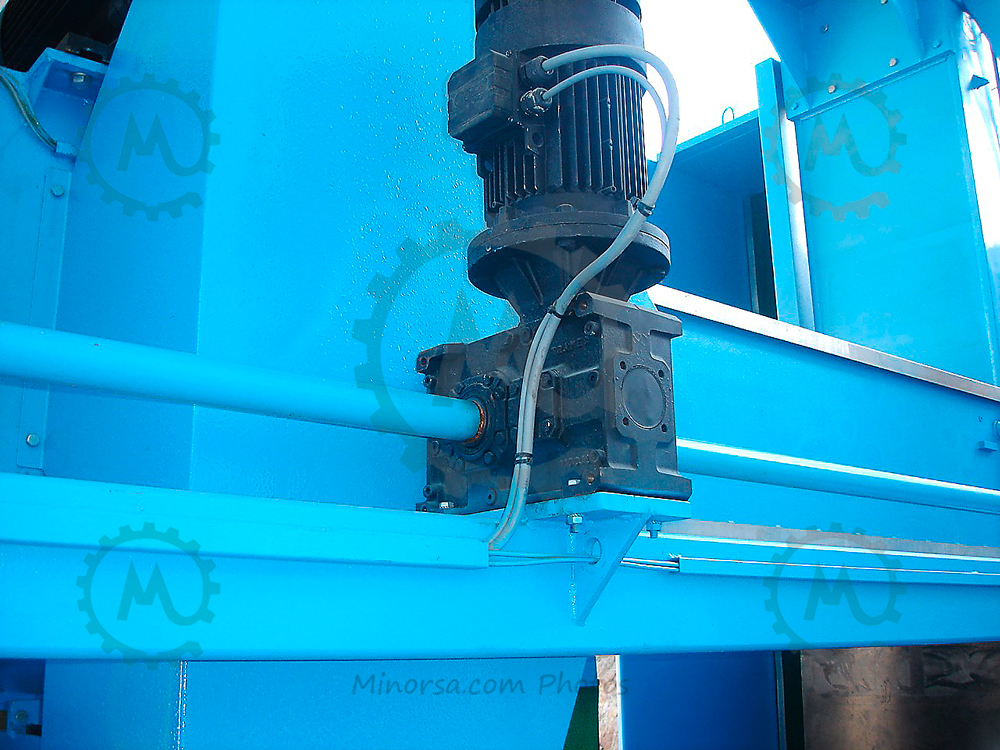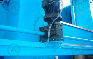 Ideal for transferring materials out of the machine without interruptions. The rotation is electric and works on a fabricated ring, on the outside or the base of the must. he ring is on conical shape to provide of 98,1/2in / 2,5mt and can assemble side arms to provide 118 in / 3m, the working height start on 29,1/2in / 75cm with the train rail on concrete to elevate from water on floor.
