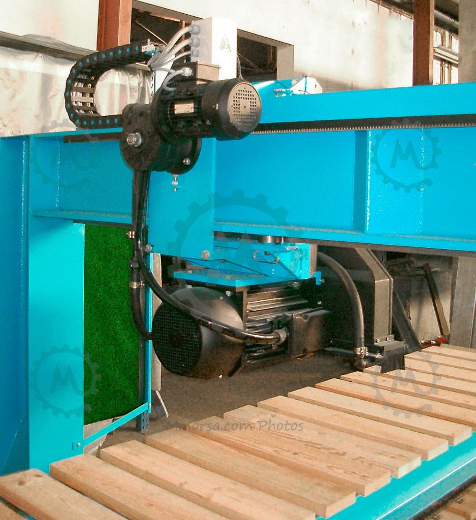 tarts with 51 in / 1,3 mt slab passage to admit the block saw work, can rotate if intend the slab to provide the face to face cutting, electric movement with full inversion of material