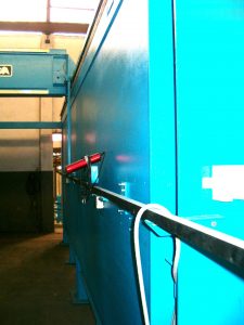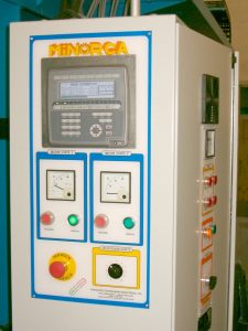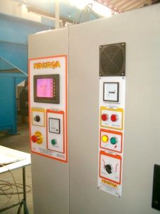 A pit dimensioned with spaced components and embedded screen. The plate is separated from the machine to avoid vibrations and has easy access, because it will be installed close to the floor. This electrical panel is built in our facilities in compliance with all CE regulations.