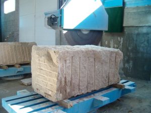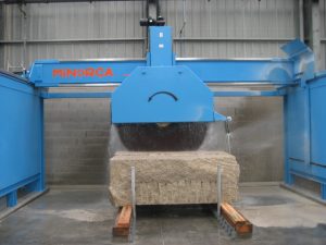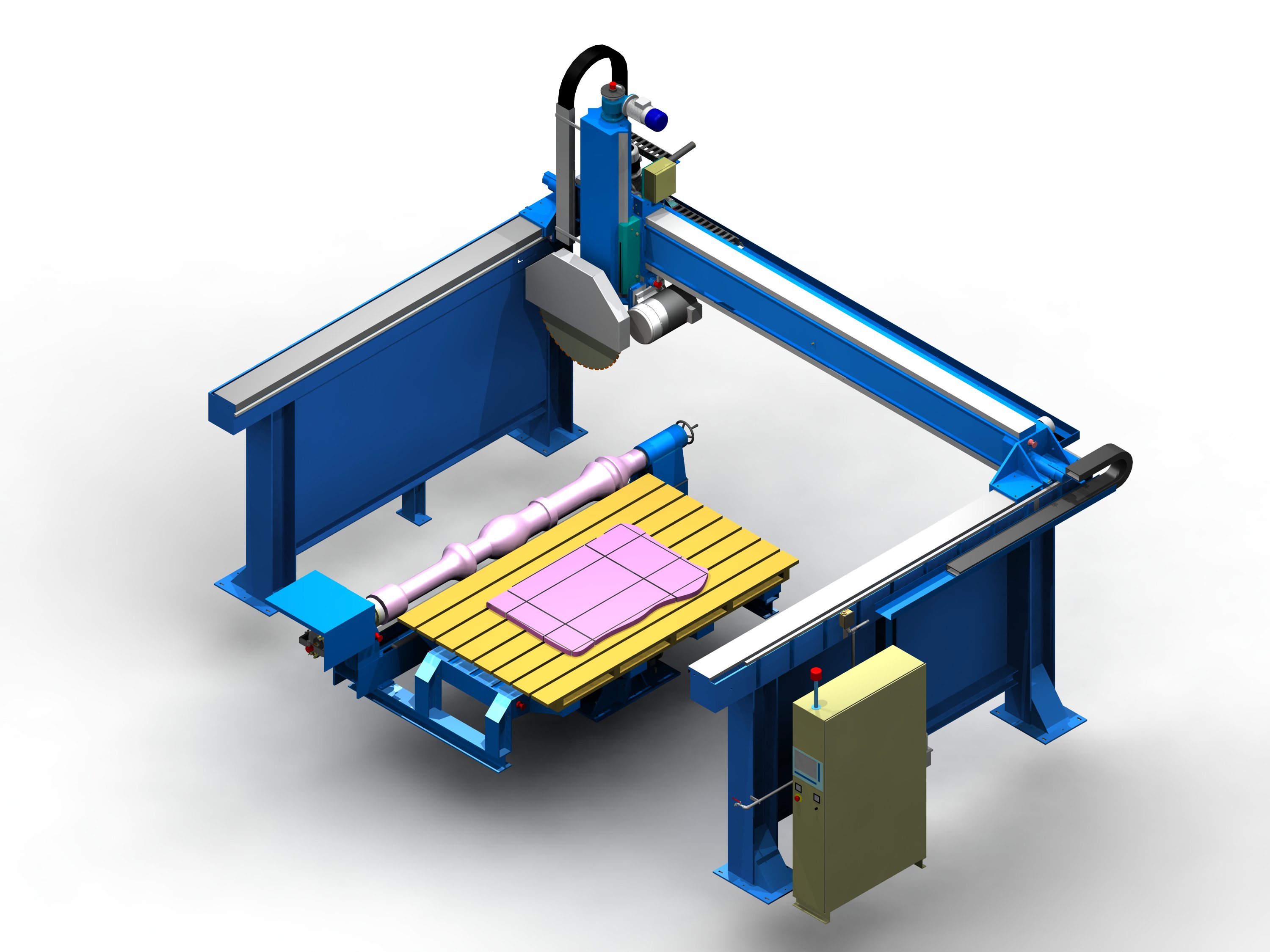 Can do that in several systems, the most fast and cheaper it’s coordinate the automatic rotation bench supporting above 12tons with the cutting head, can also work with the horizontal saw mixing several axes or milling the stone |