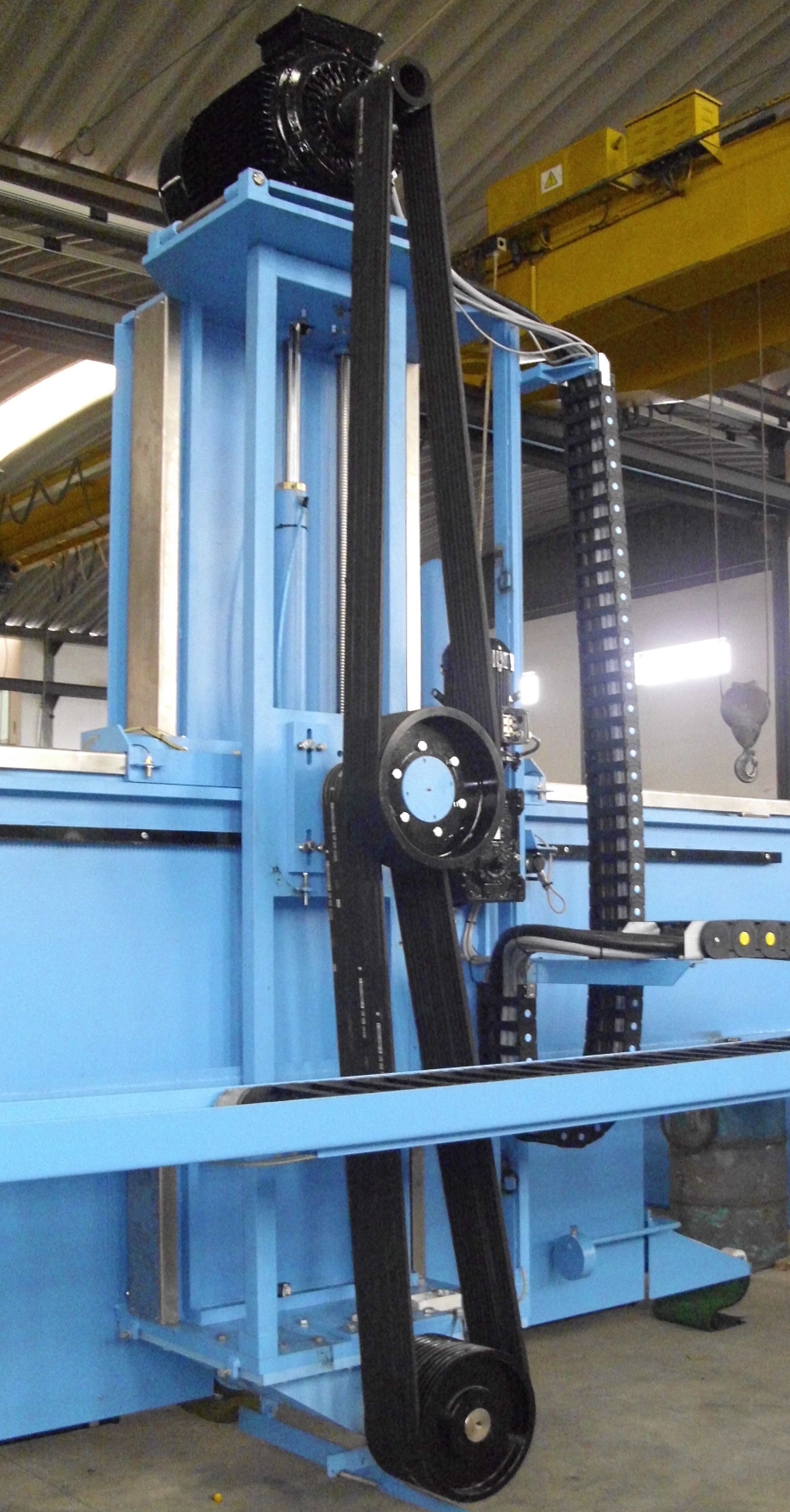 The displacement carriage makes the connection between the bridge and the ram.It is possible that the proper displacement carriage tilts the ram on the side.