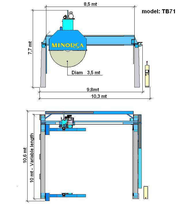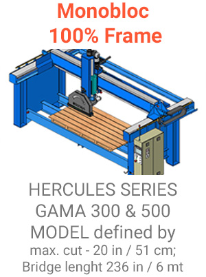 With an excessively robust structure, develop in early 2004, in upgrade for conjugation of models Gamma 500 and Double Bridge Block Saw, to maximum disk in the market. In order to support disks by 137,1/2 in / 3,5 m, so much is its potential that it has a multipurpose use, with its great rentability to receive a vertical RAM with useful way by 79 in / 2 m and using with high power until 125 hp / kw in limestone cut by one passing movement.