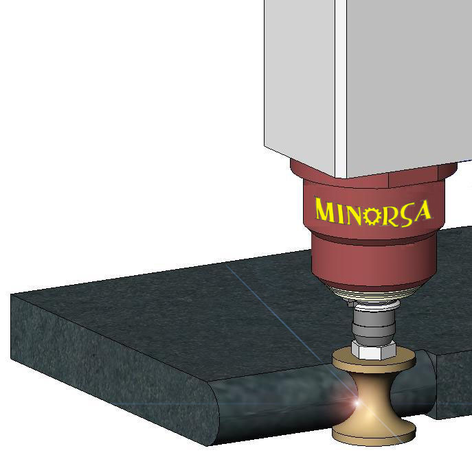 Final Edge Polishing Work After the cutting process it’s possible change the head on the travel RAM to finishing and polishing the edges and put it in several shapes, also can work on an proper bench or monoframe solution |