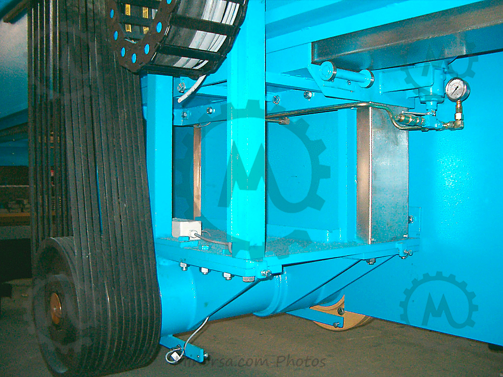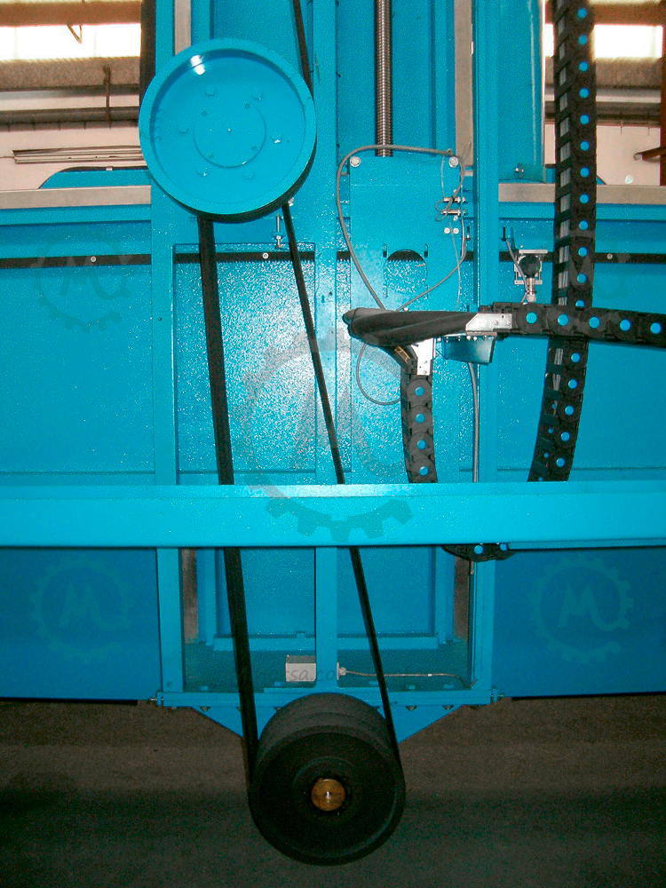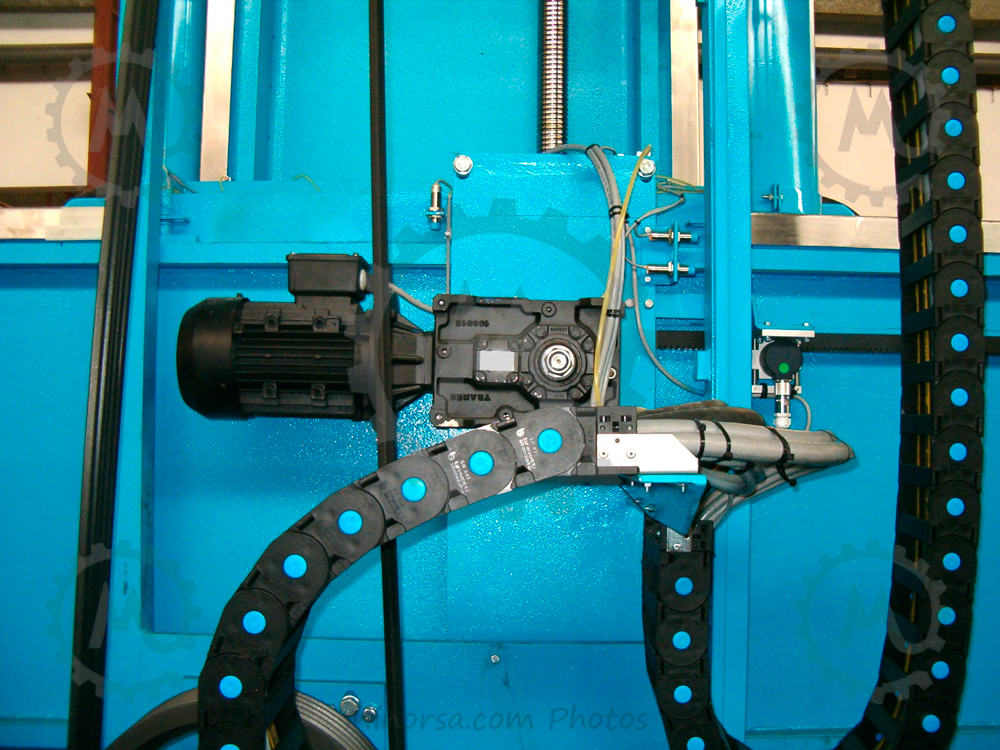 Special electric cables with mesh sheathed, moved through the cable supporting rails. Measure Encoder component with braided wire mesh cables (counting system) to protect against power surges. The base installation also has inner lined water cables consisting of a mesh reinforced rubber hose inside. Shields and rails for collecting the oil coming from lubrication of material used for cutting. Water pressure switch to control cooling and washing of the saw. (Placed on top of pillar for greater accuracy).
