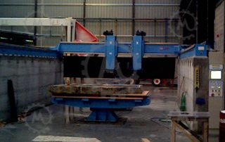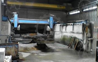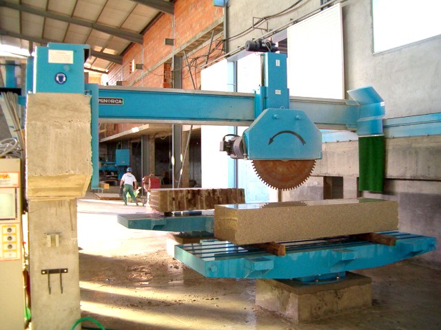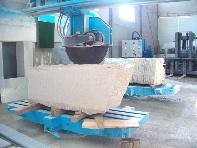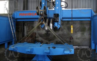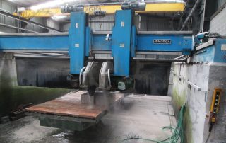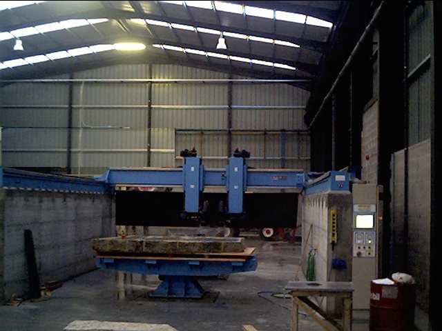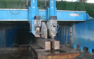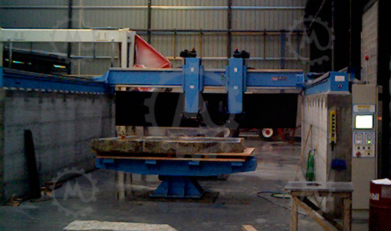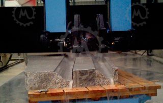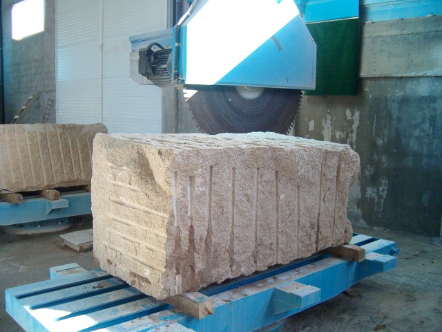 Can do that in several systems, the most fast and cheaper it’s coordinate the automatic rotation bench supporting above 12tons with the cutting head, can also work with the horizontal saw mixing several axes or milling the stone |