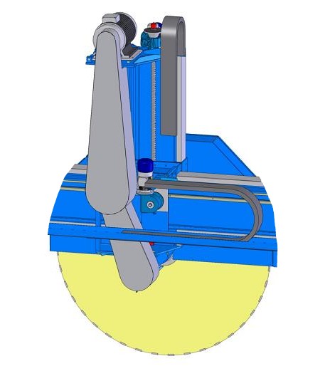 Vertical and Tilt Cut Until 46 Grades On the ram can execute inclination since vertical at 0° until 46°, allowing the cutting process in several passages without step marks on the stone |