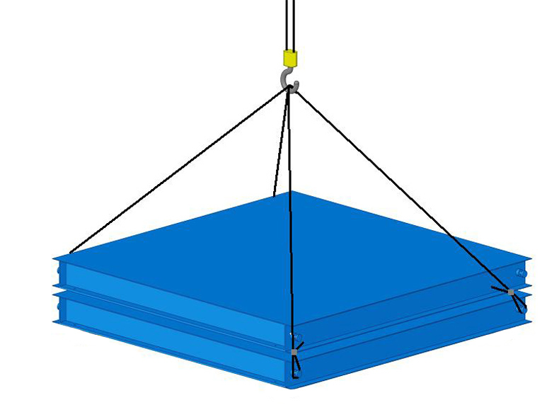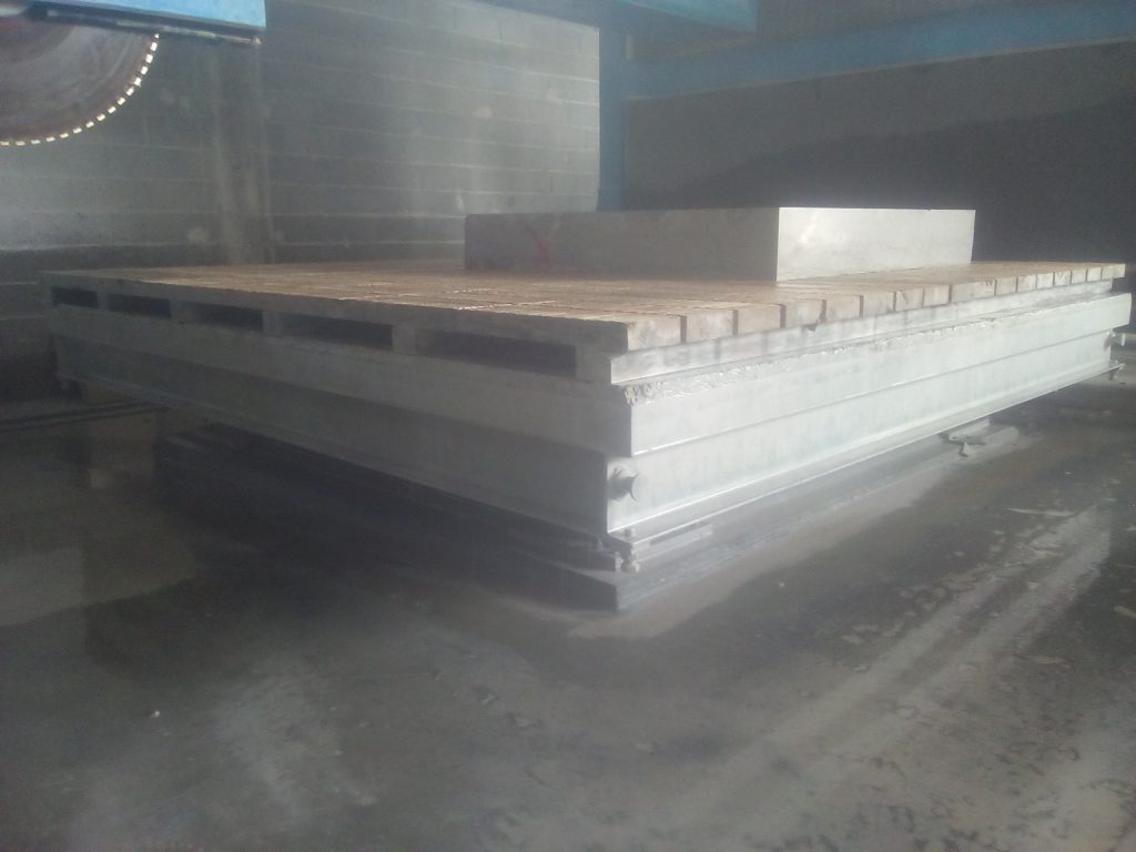 Metallic frame with pine wood over to work by forklift and crane.