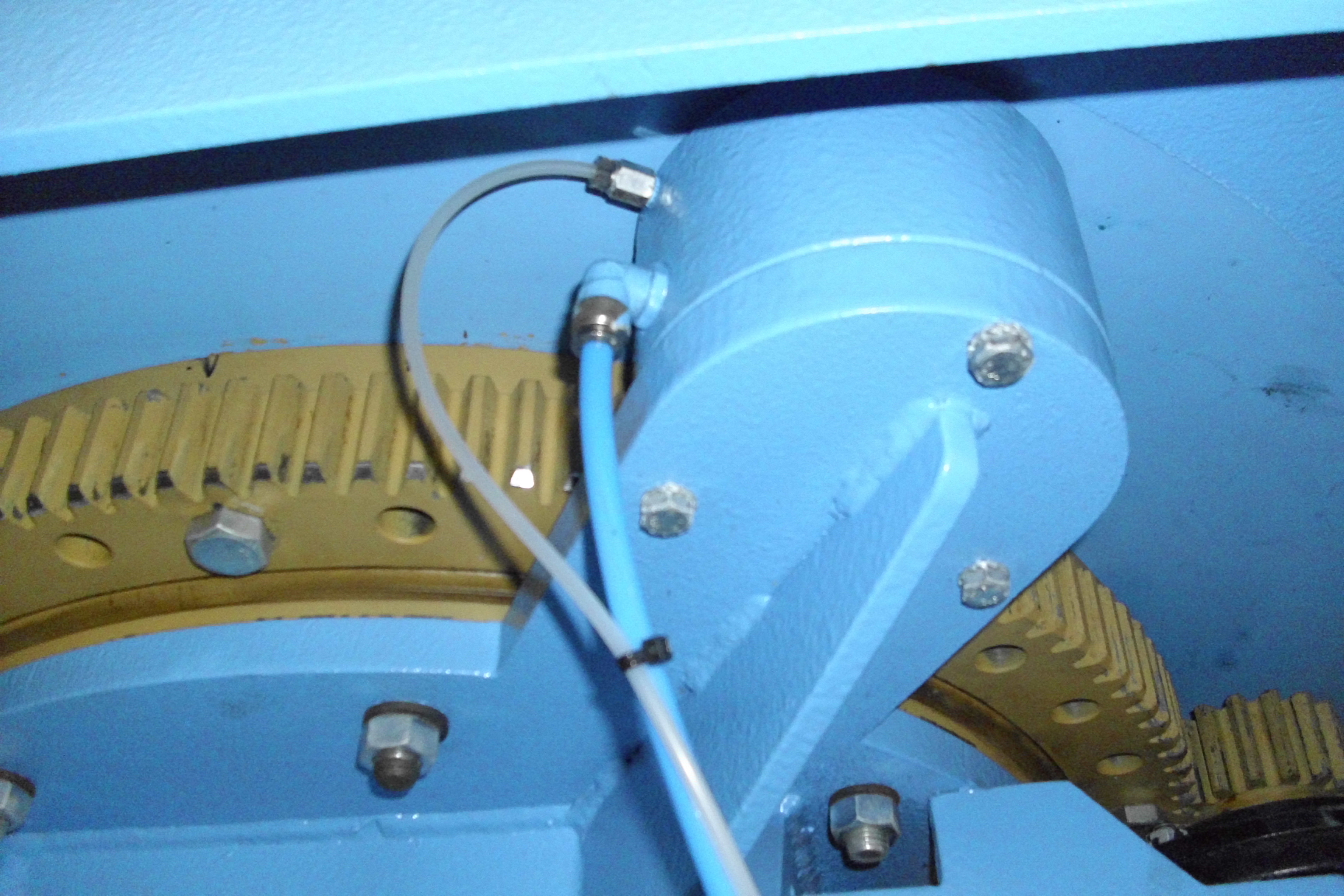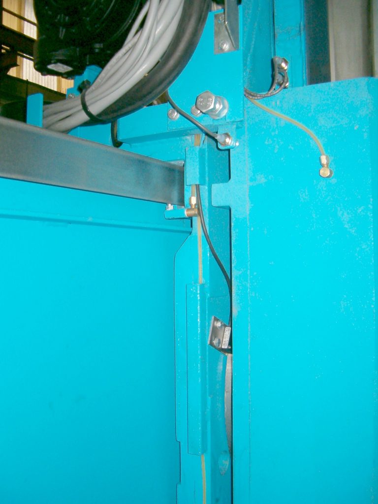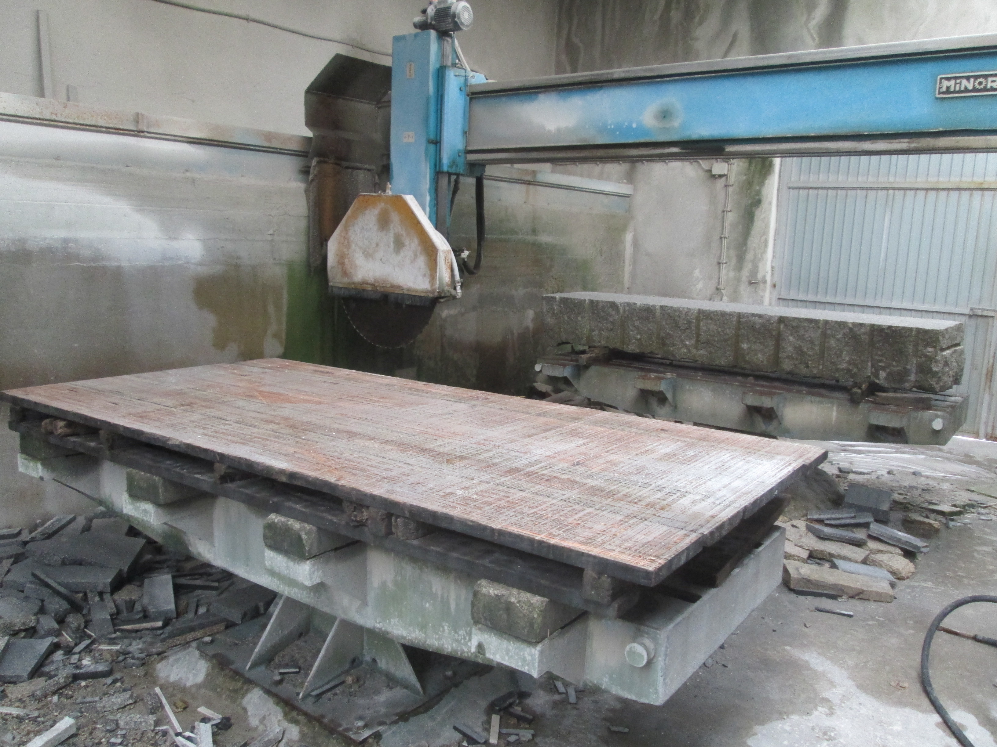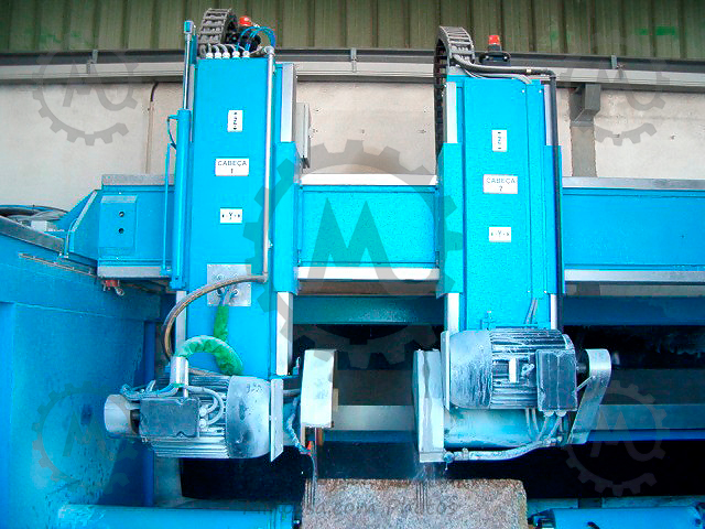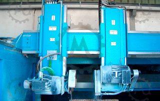 Special electric cables with mesh sheathed, moved through the cable supporting rails. Measure Encoder component with braided wire mesh cables (counting system) to protect against power surges. The base installation also has inner lined water cables consisting of a mesh reinforced rubber hose inside. Shields and rails for collecting the oil coming from lubrication of material used for cutting. Water pressure switch to control cooling and washing of the saw. (Placed on top of pillar for greater accuracy).