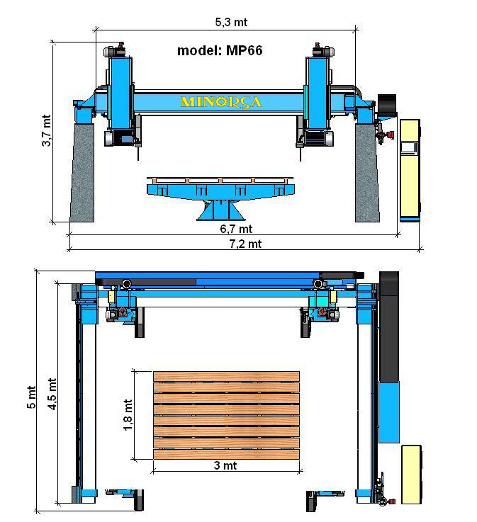 With this system you can monitoring the calculations, times consumption, speeds, position, rotations and more, control the order of the inversion axis; position and program the out-of-power memory and change the offset cut at ant time. This also allow the security on flange by a protection bar on specific work as block saw; normally closed-circuit sensors, sending messages to the mobile phone and have a constant technology update search.