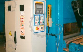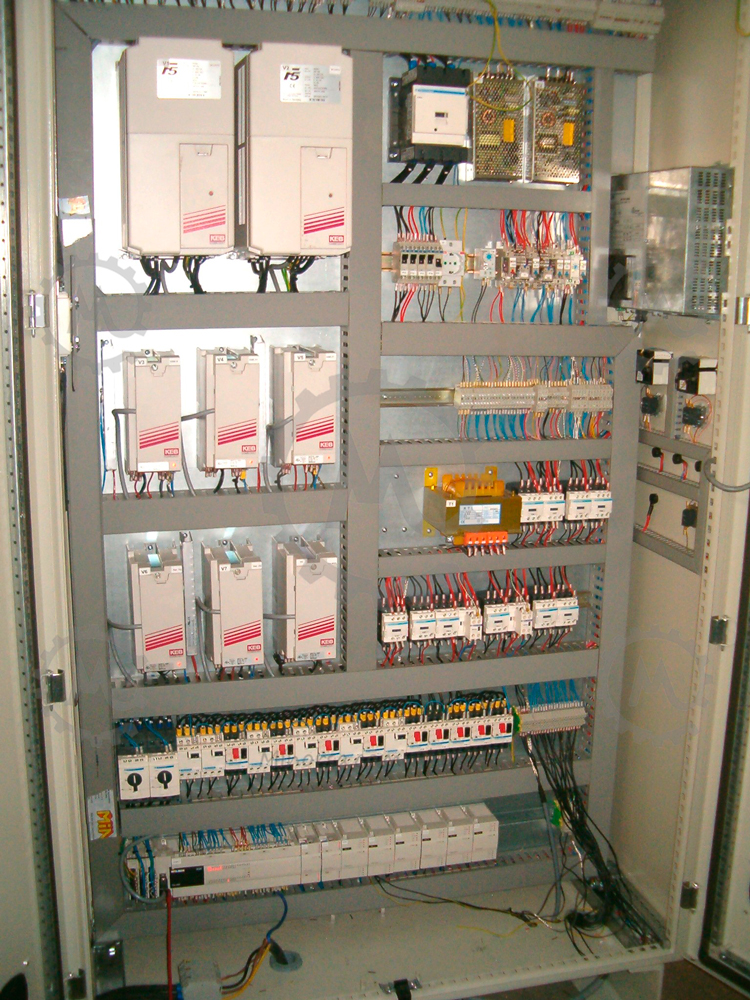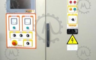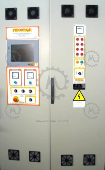 A pit dimensioned with spaced components and embedded screen. The plate is separated from the machine to avoid vibrations and has easy access, because it will be installed close to the floor. This electrical panel is built in our facilities in compliance with all CE regulations.