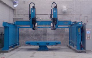 Theres two systems for angle cutting, the tilt head it’s the most cheaper, rentable and gives perfect finishing, the dual movement of axes can do the process also with the saw inclination axe |