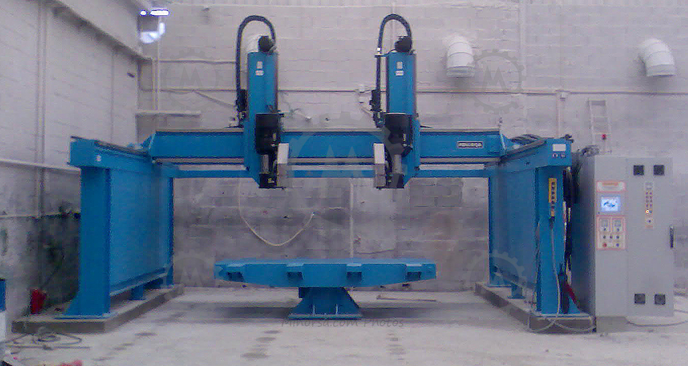 Accessories with laser focus, allows the use of laser for better alignment of the initial positioning on the pieces to be cut. One of its features is the individual variable speed transmission, which allows for more precise adjustment of speed and position. This also has water shut-off valves fitted as standard unless otherwise requested.