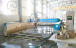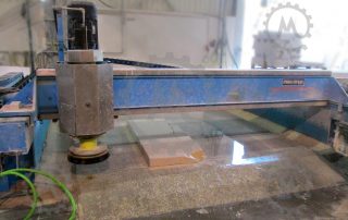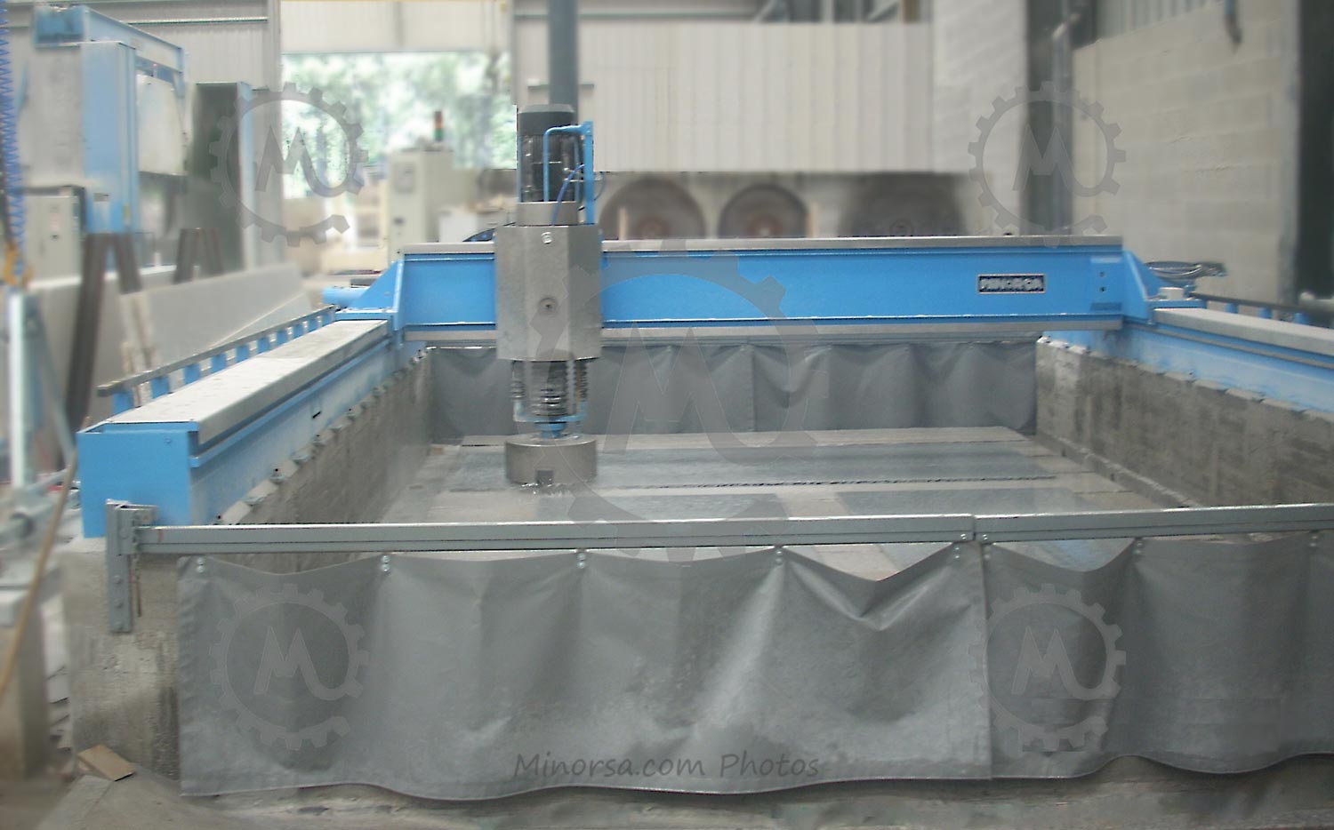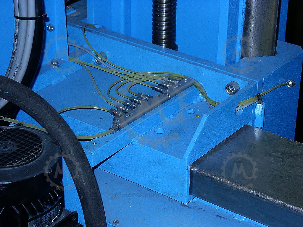 Special electric cables with mesh sheathed, moved through the cable supporting rails. Measure Encoder component with braided wire mesh cables (counting system) to protect against power surges. The base installation also has inner lined water cables consisting of a mesh reinforced rubber hose inside. Shields and rails for collecting the oil coming from lubrication of material used for cutting. Water pressure switch to control cooling and washing of the saw. (Placed on top of pillar for greater accuracy).