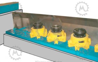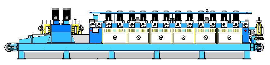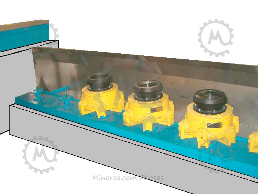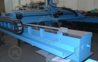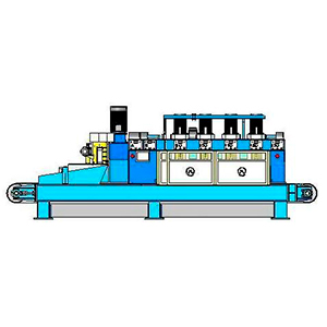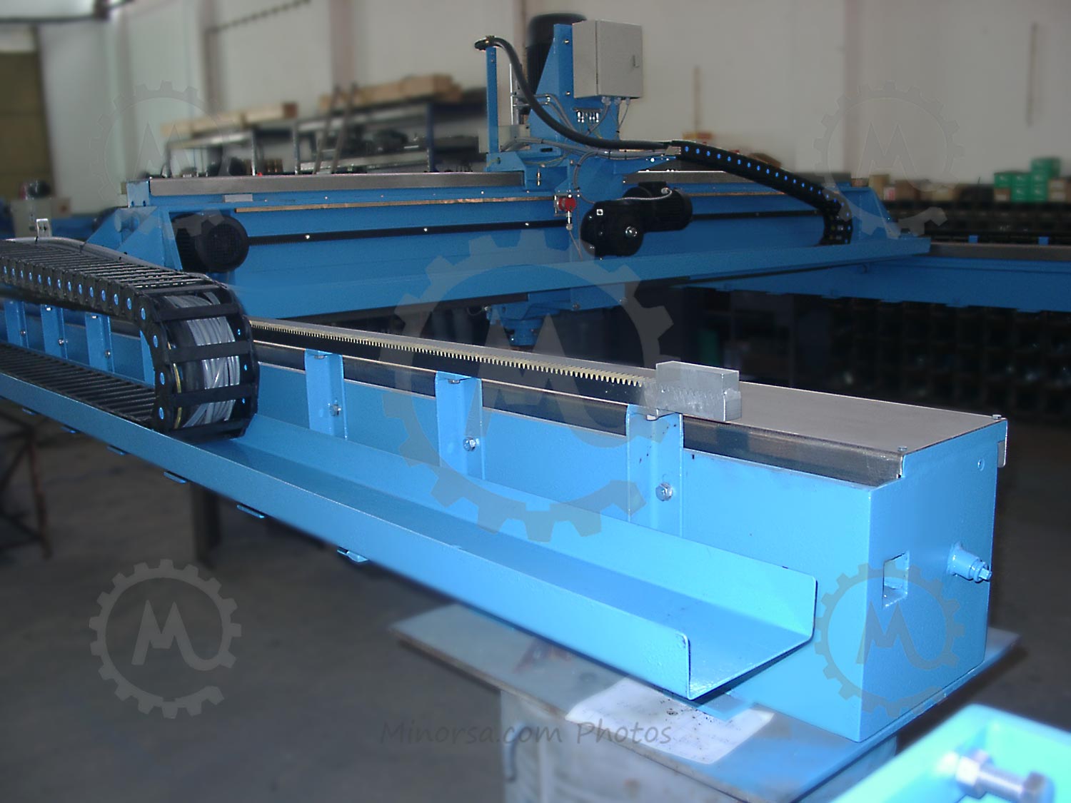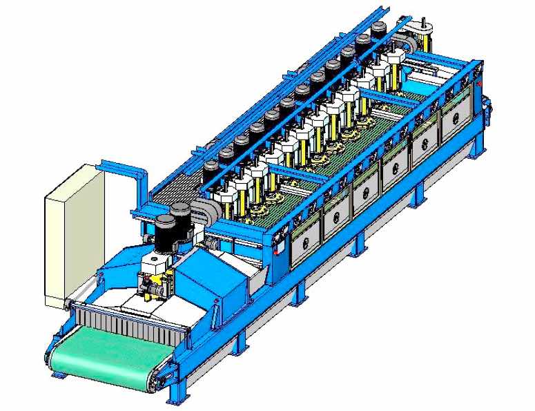 It can be assembled with the option to choose the loaded from the front or the side as well the linear head change automatic can be in one line or two lines with 12 working heads or the lateral inclination to allow large round pieces, travel displacement can be made as the space available on factory, length until 787,1/2 inch / 20 meters.