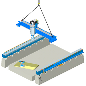 Raise the bridge to the side-shift cars, bolt all sides of the bridge and check movement manually and without friction. Mount components and accessories on ram. Take final tests and work specific training, and it’s ready to work 24/7.