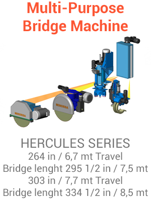 Based on the concept of making full use of head swapping equipment for multitasking, on the same bridge can be mounted more than one ram model. It is possible with two side supports, with one of two powertrain systems, with two transmission systems or with one of two control systems, but always with the highest quality products.