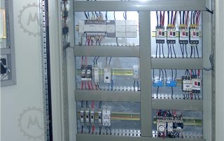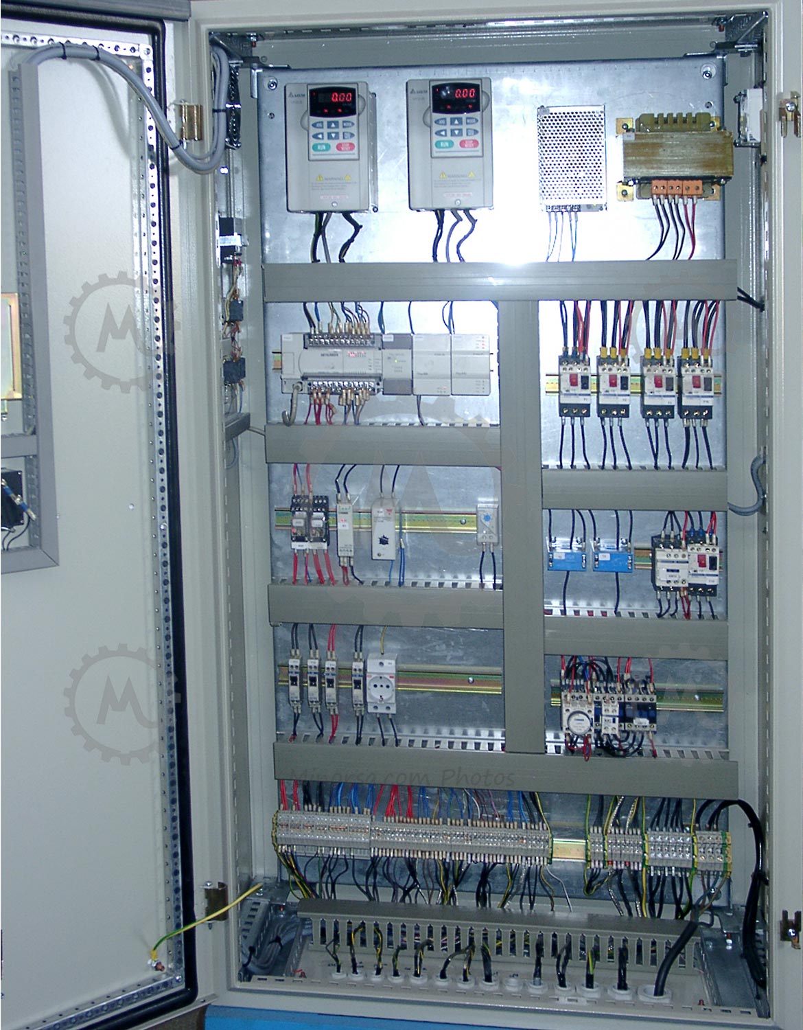 A pit dimensioned with spaced components and embedded screen. The plate is separated from the machine to avoid vibrations and has easy access, because it will be installed close to the floor. This electrical panel is built in our facilities in compliance with all CE regulations.
