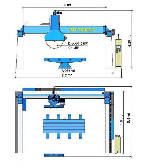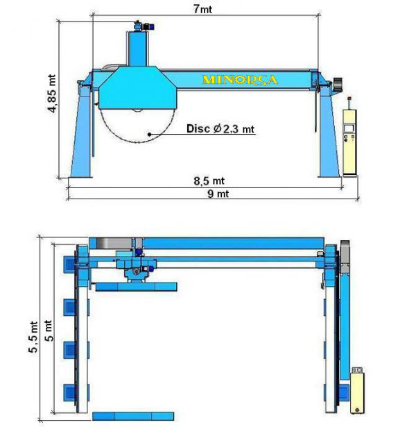 With one or multiple cables will execute the slab cutting process, the must high height or length saw process