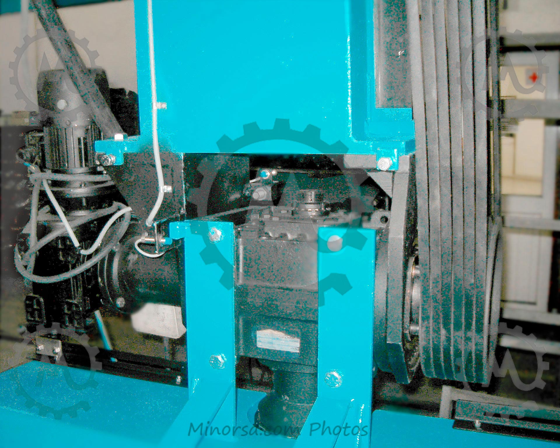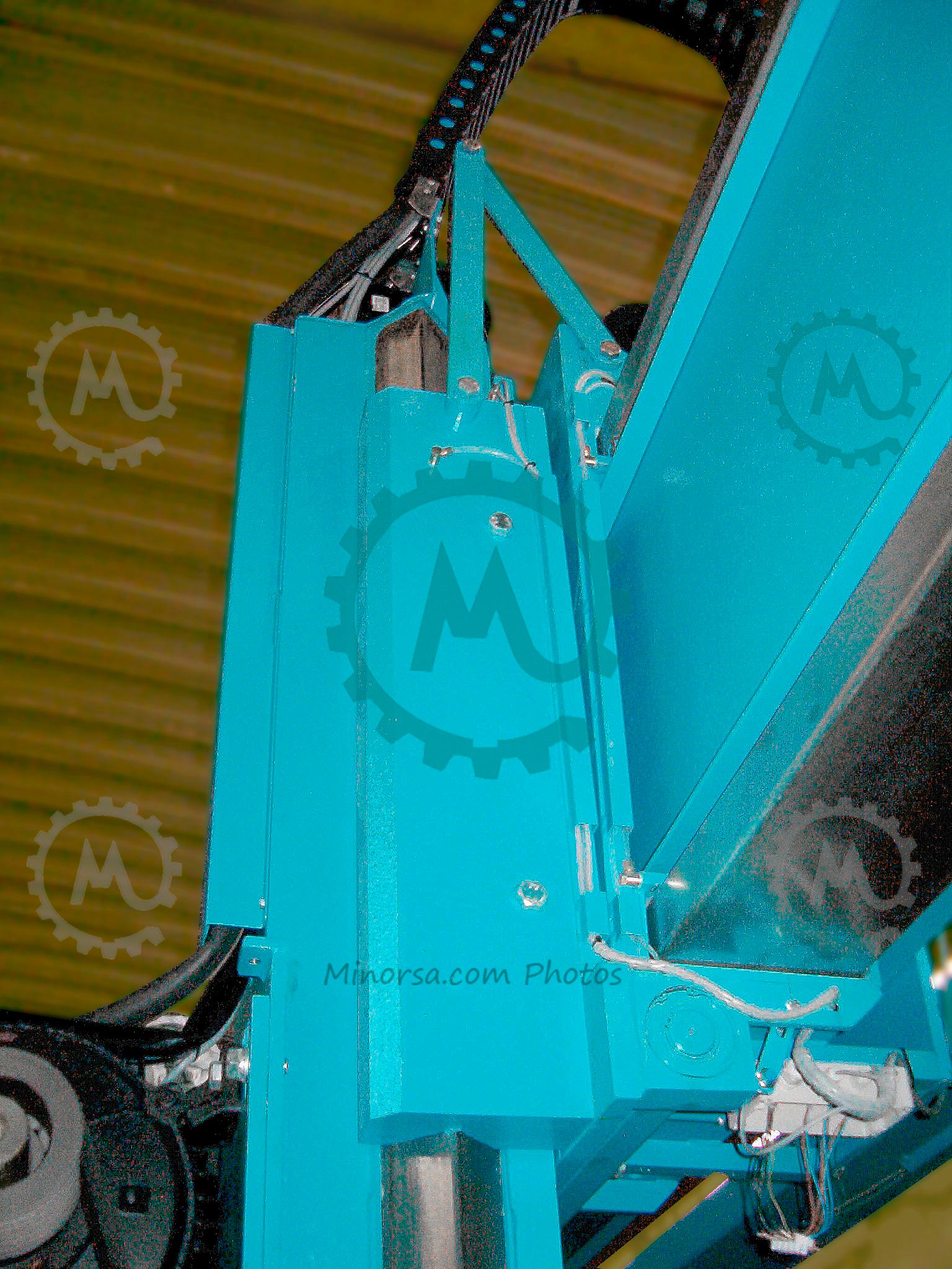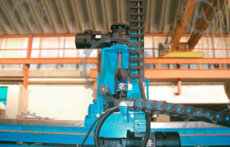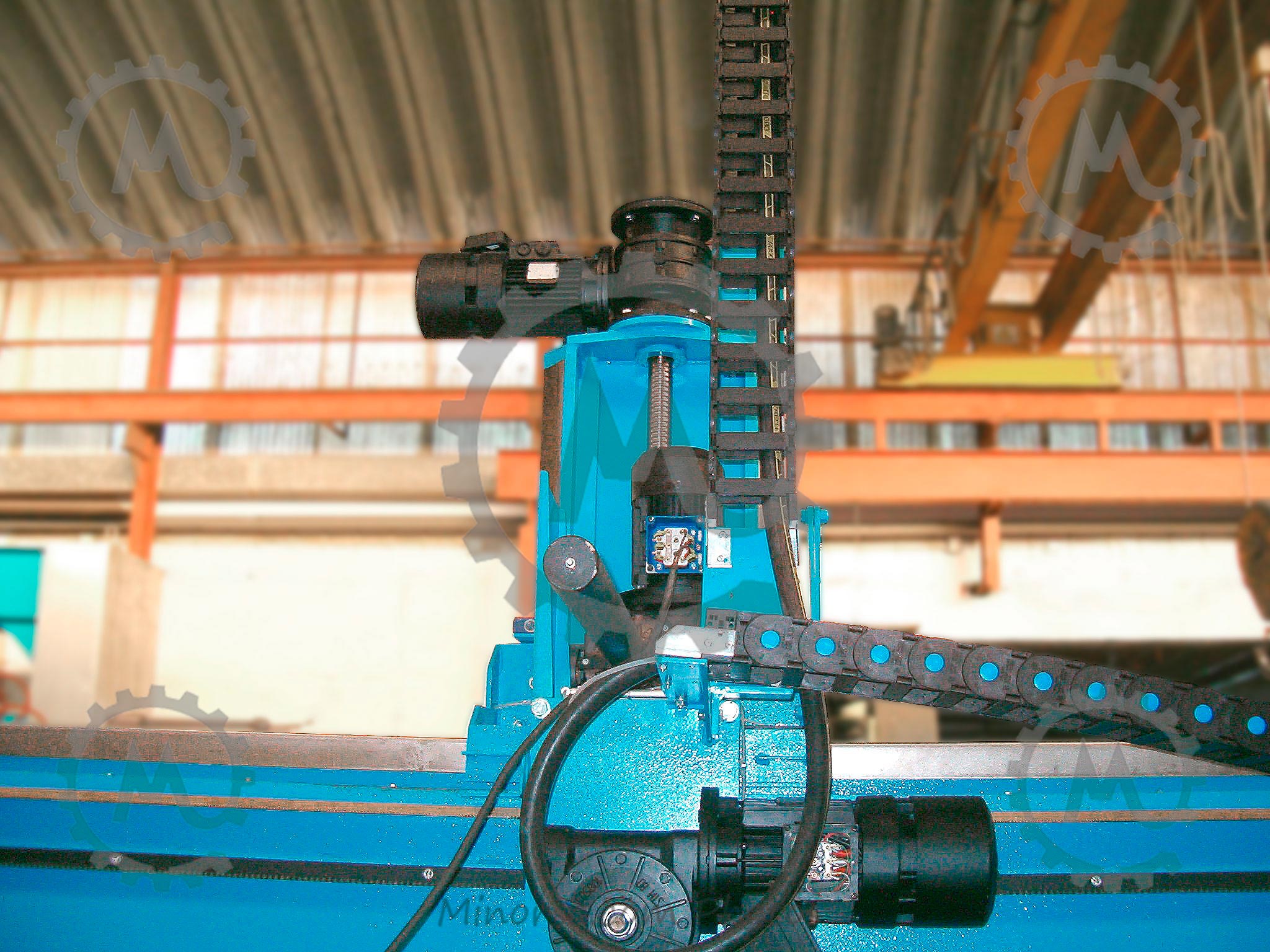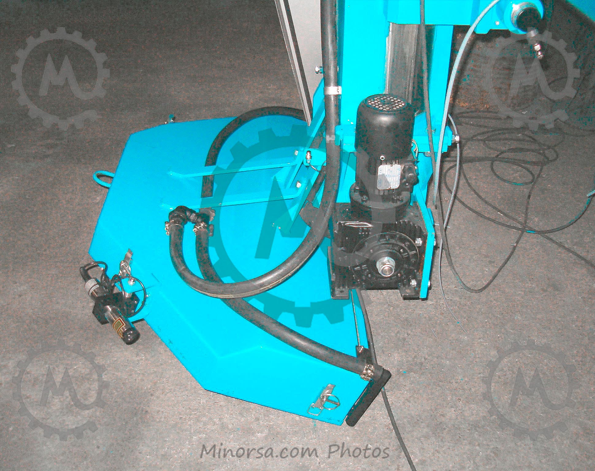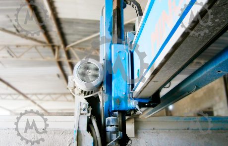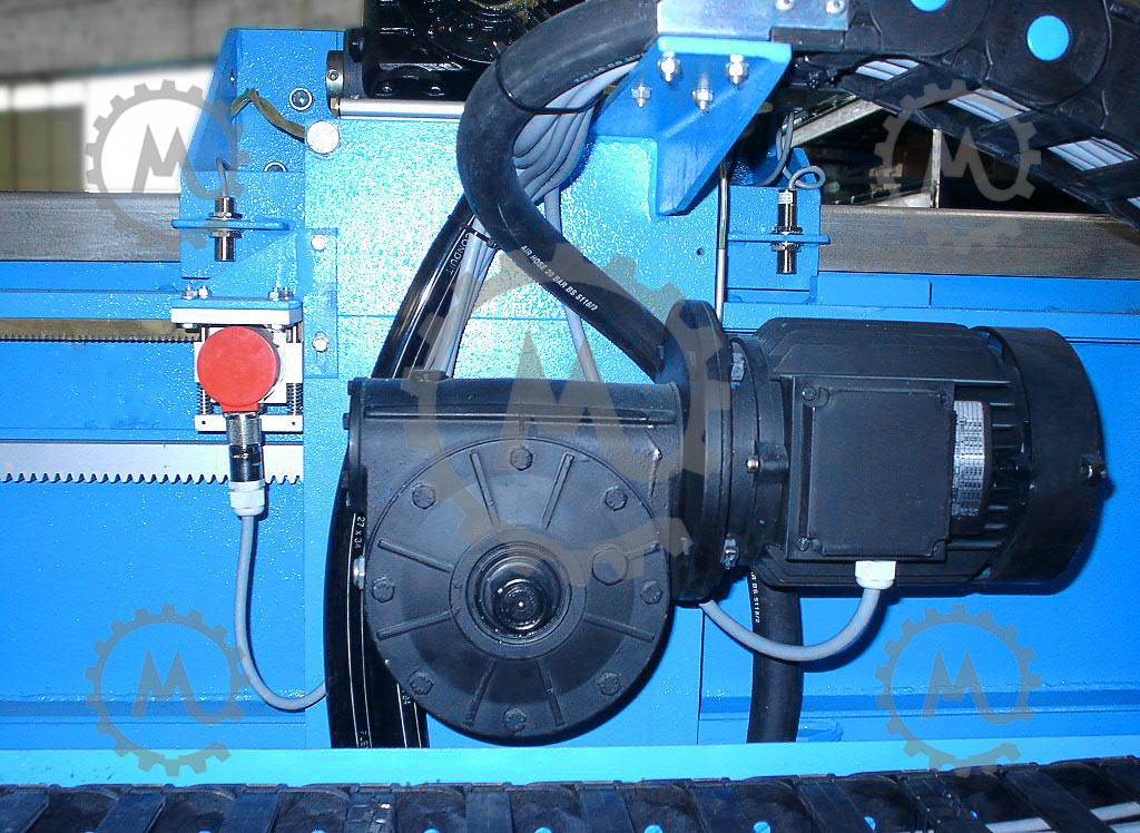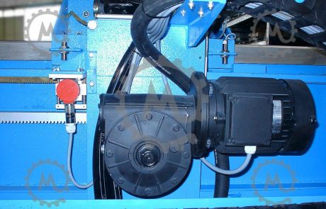 Special electric cables with mesh sheathedmoved through the cable supporting railsMeasure Encoder component with braided wire mesh cables (counting system) to protect against power surgesThe base installation also has inner lined water cables consisting of a mesh reinforced rubber hose insideShields and rails for collecting the oil coming from lubrication of material used for cutting. Water pressure switch to control cooling and washing of the saw. (Placed on top of pillar for greater accuracy).