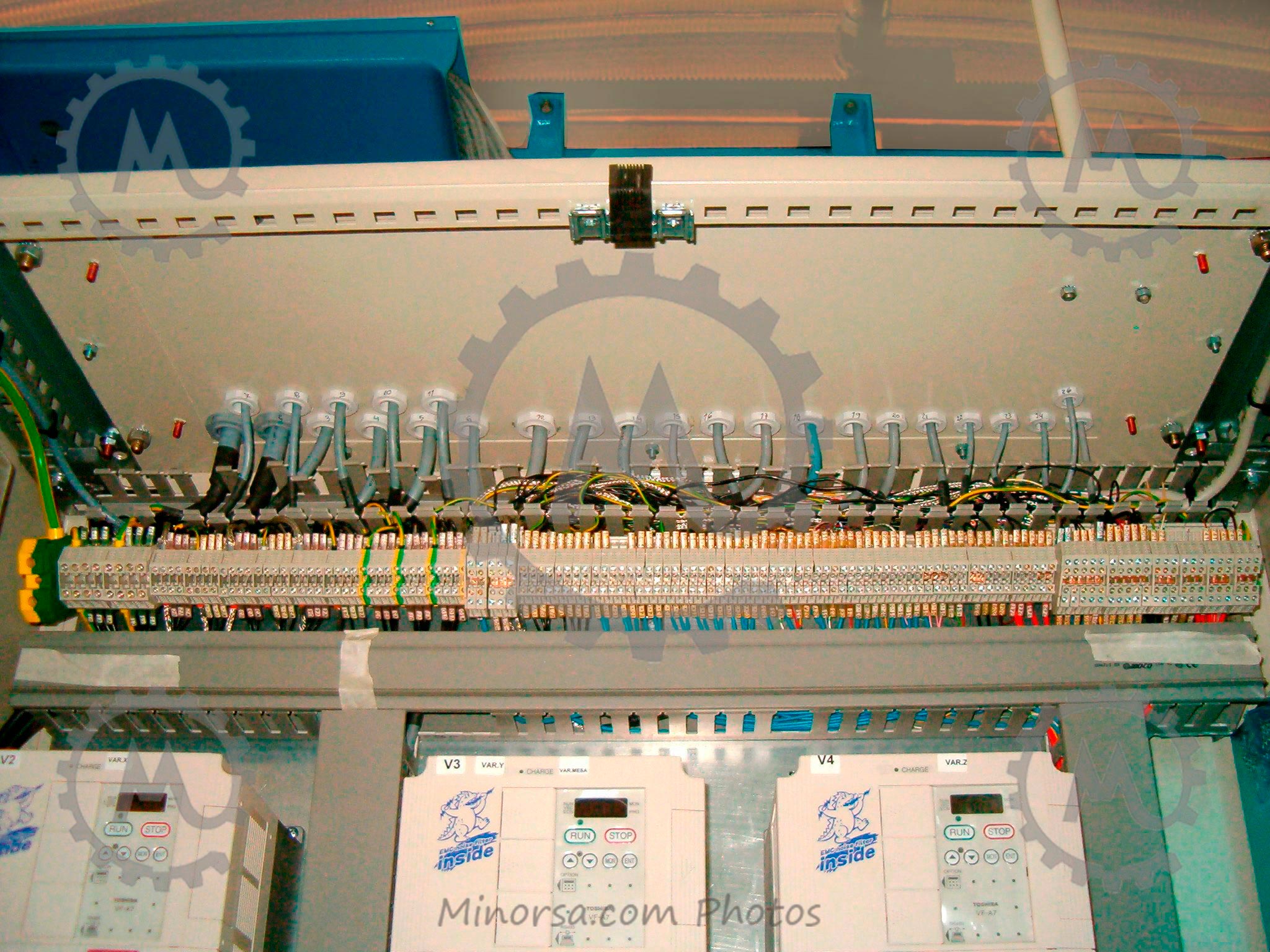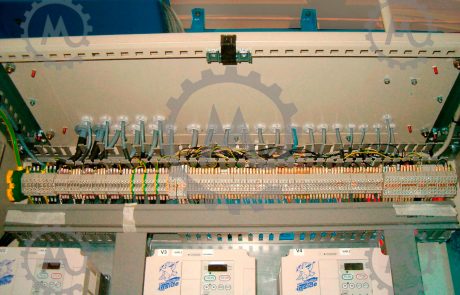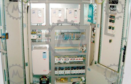 pit dimensioned with spaced components and embedded screen. The plate is separated from the machine to avoid vibrations and has easy access, because it will be installed close to the floor. This electrical panel is built in our facilities in compliance with all CE regulations.